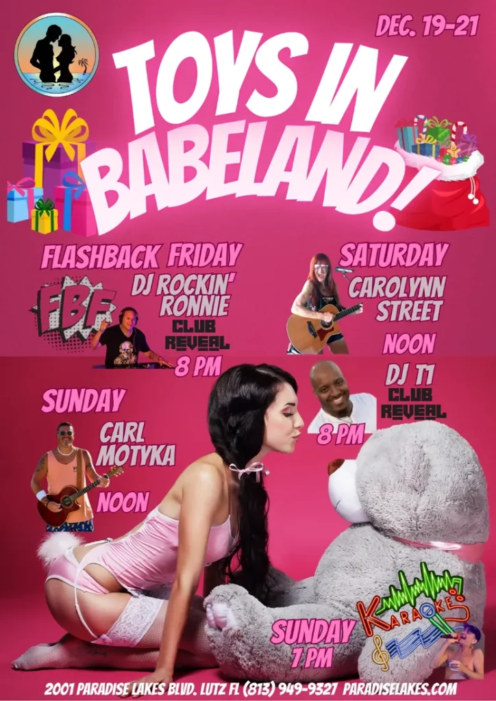 The games and events schedules at Paradise Lakes Clothing Optional Resort are frequently changing. Please check with the resort or with us to confirm activities.